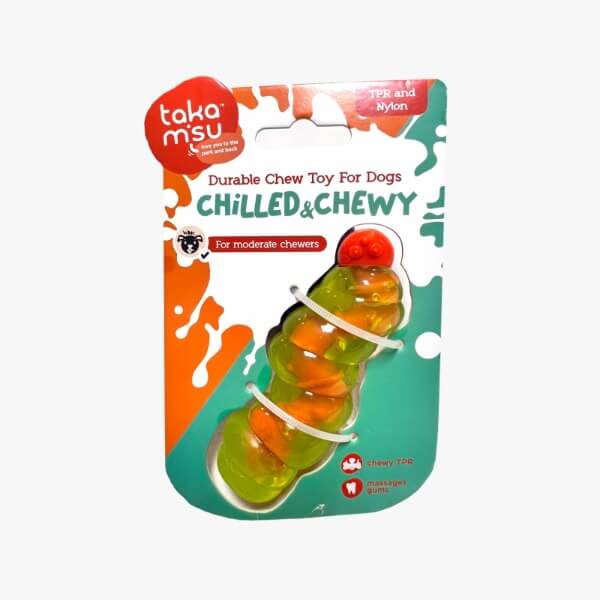 Chilled and play! Chilled and Chewy is great for light chewers, gentle on teeth and gums, perfect for teething puppies. Exhilarates and encourages constructive chew time. Chilled and play!