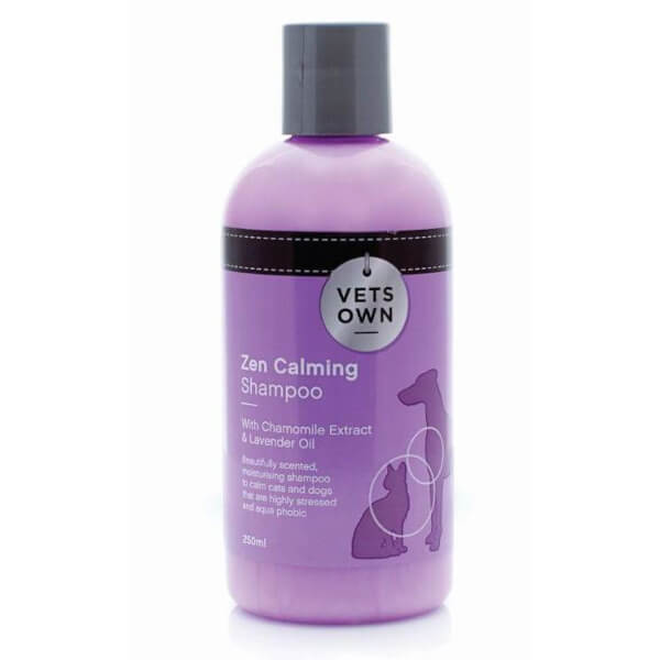Vets Own Zen Calming Shampoo with Chamomile Extract & Lavender Oil is a rich, calming and moisturising shampoo for cats and dogs who are "highly strung", scared of water and find the bathing experience stressful.