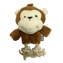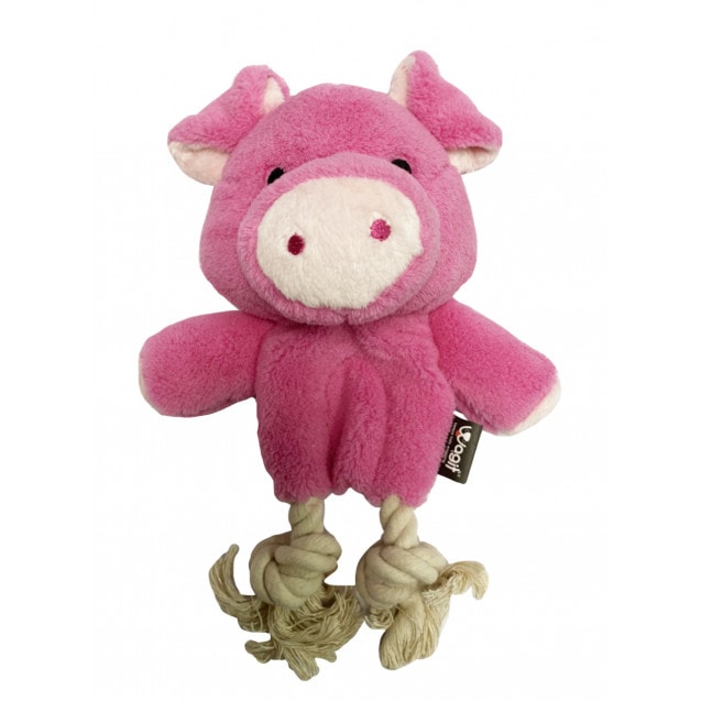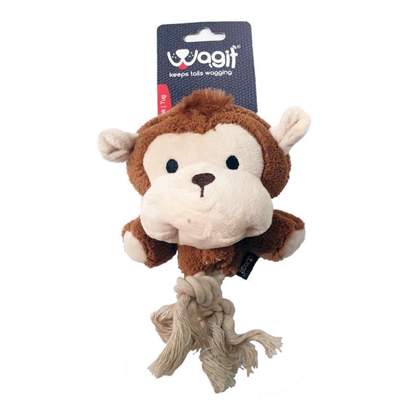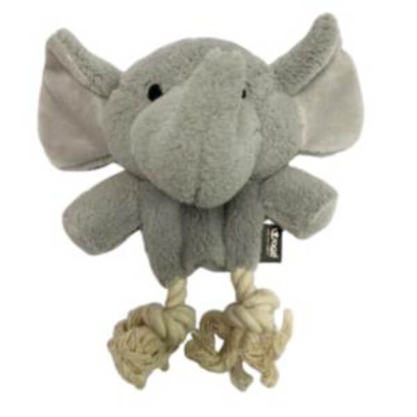 These plush cuties squeak and have a rope for tugging. Best suited to small to medium breeds.
